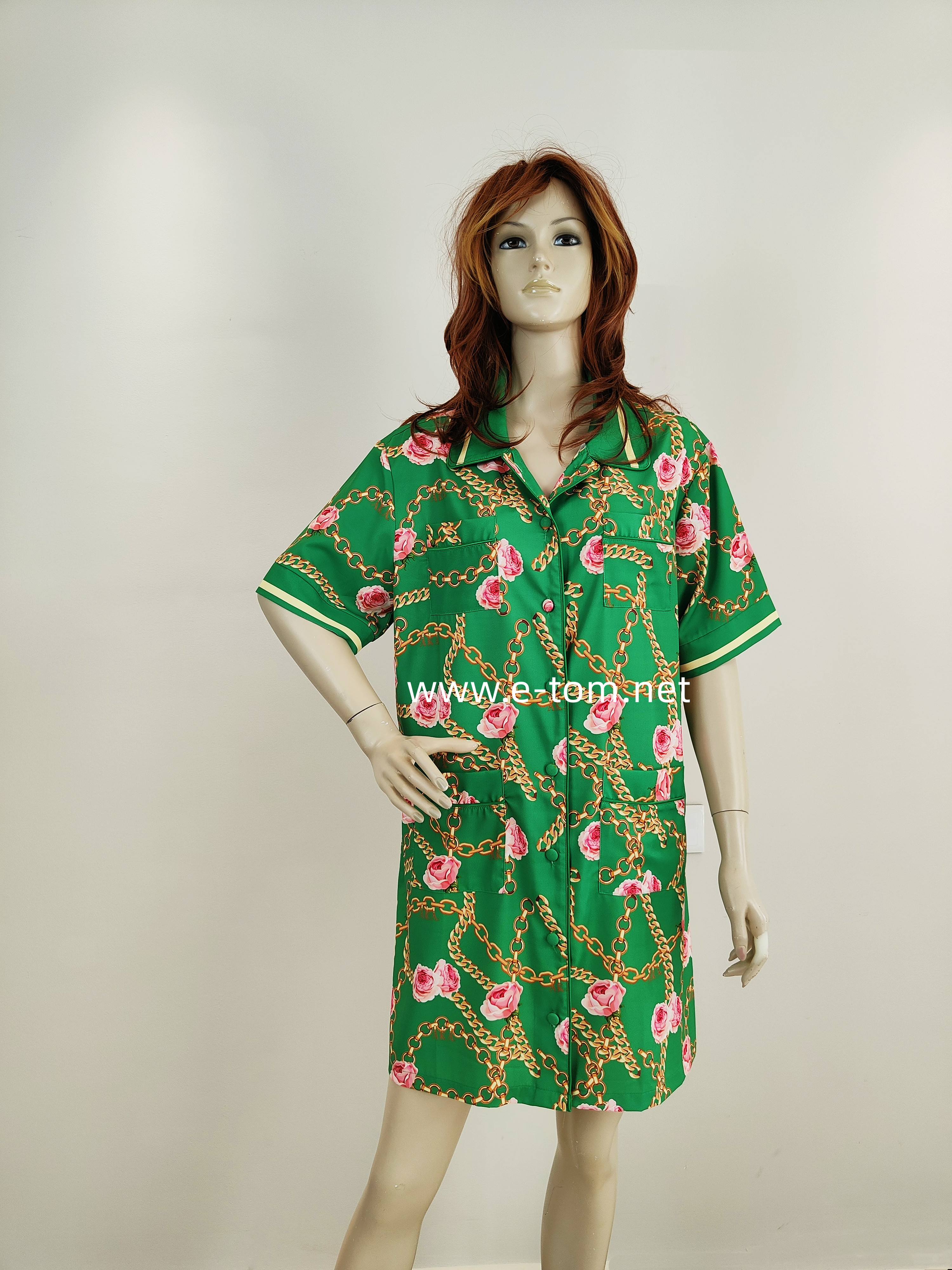 Print Silk Button Nightshirt