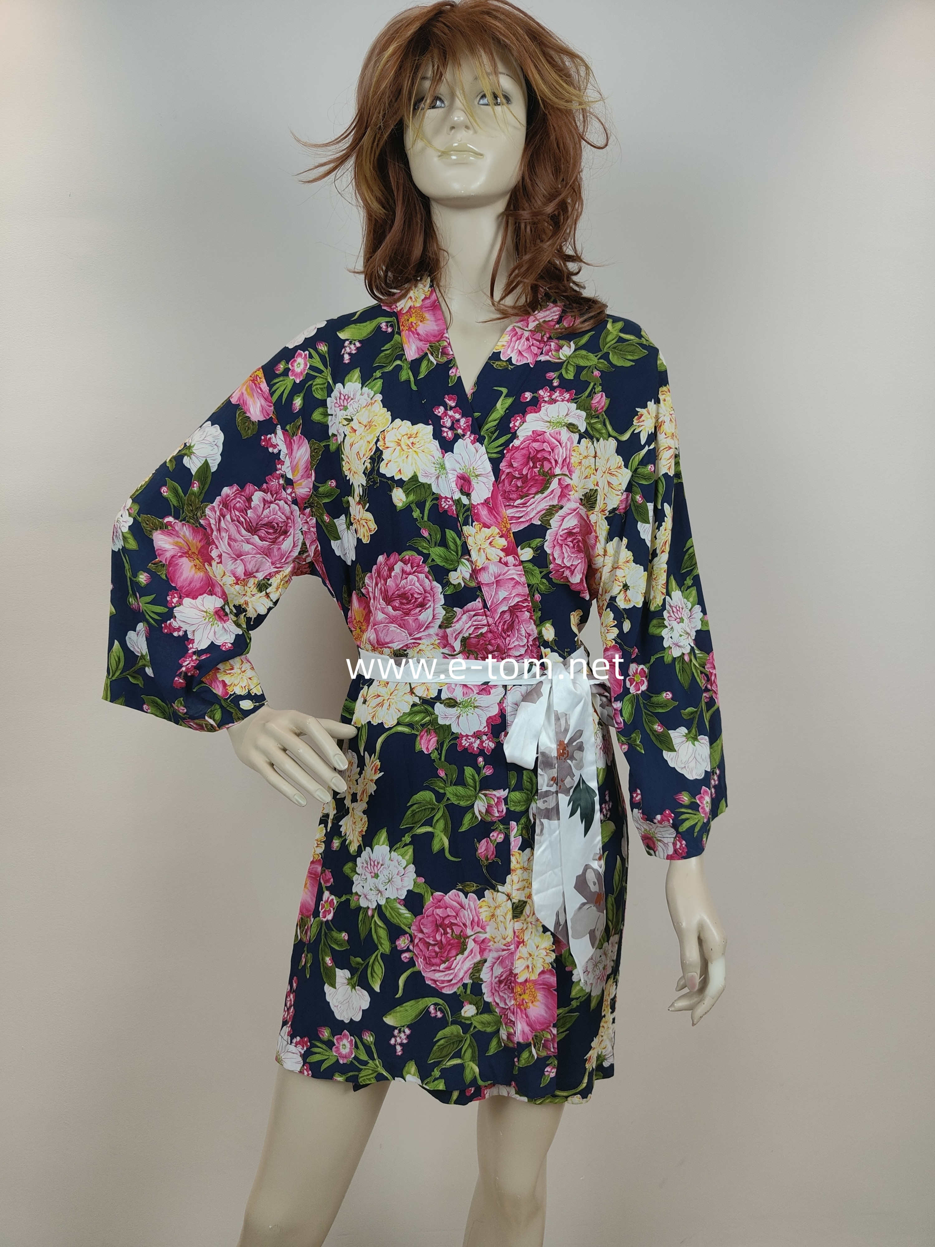 Floral Print Silk Button Nightshirt;