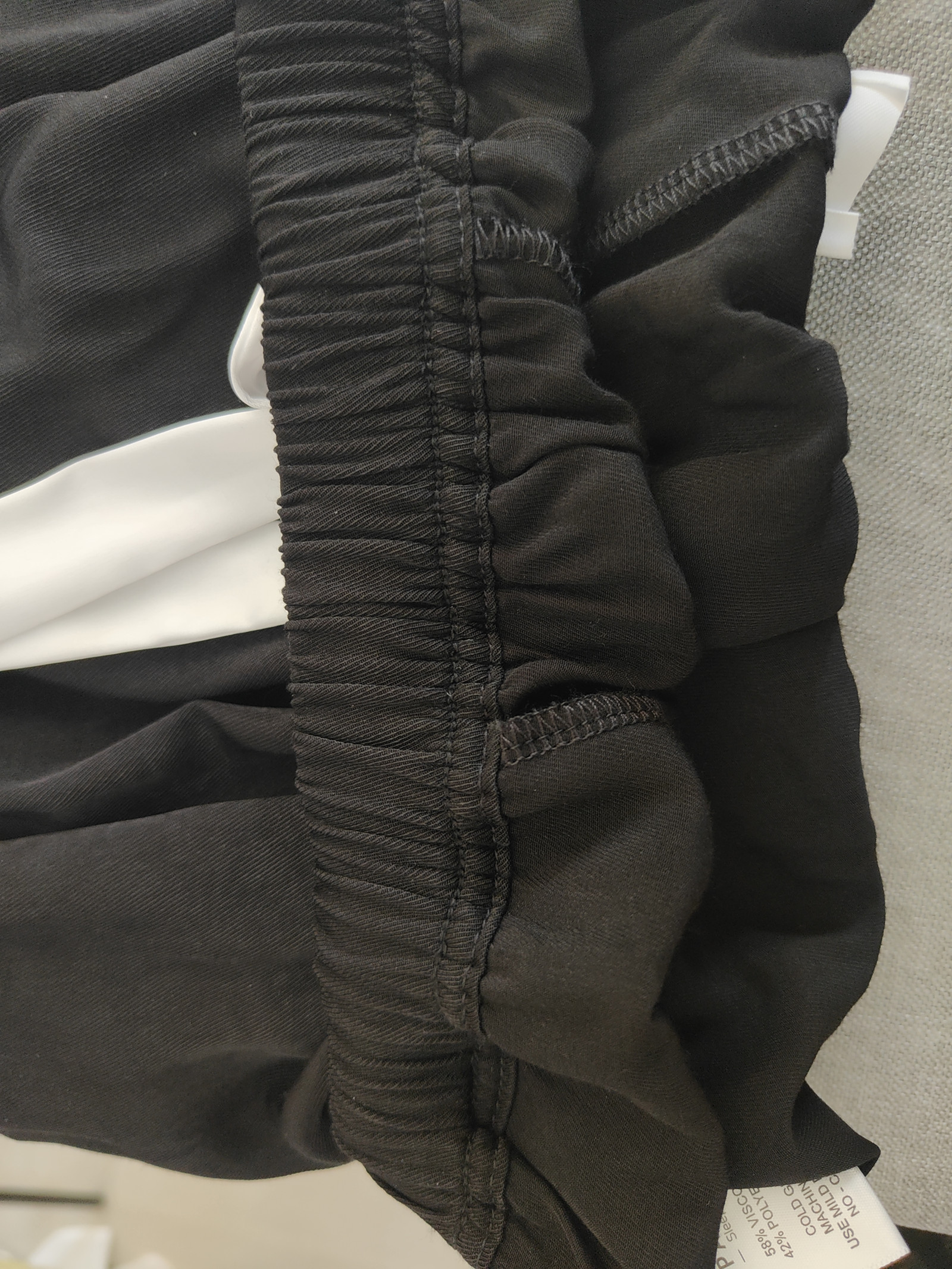 One more stitching line on waistband to secure the elastic can not be removed.